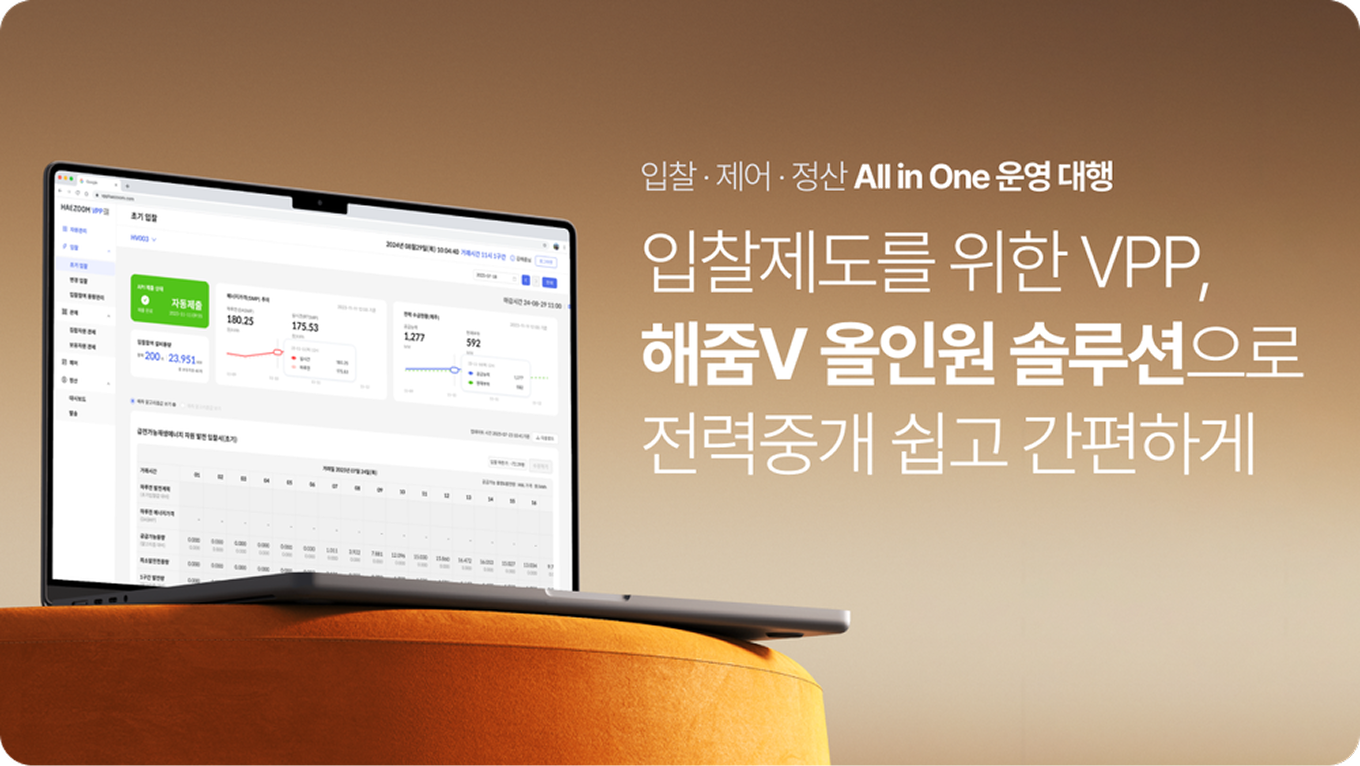 이런 해줌의 기술력과 제주 시범사업을 통해 쌓아온 운영 노하우. 해줌V 올인원 솔루션으로 쉽게 만나고, 전력중개사업을 제로 베이스가 아닌 전문가처럼 시작해보세요.
