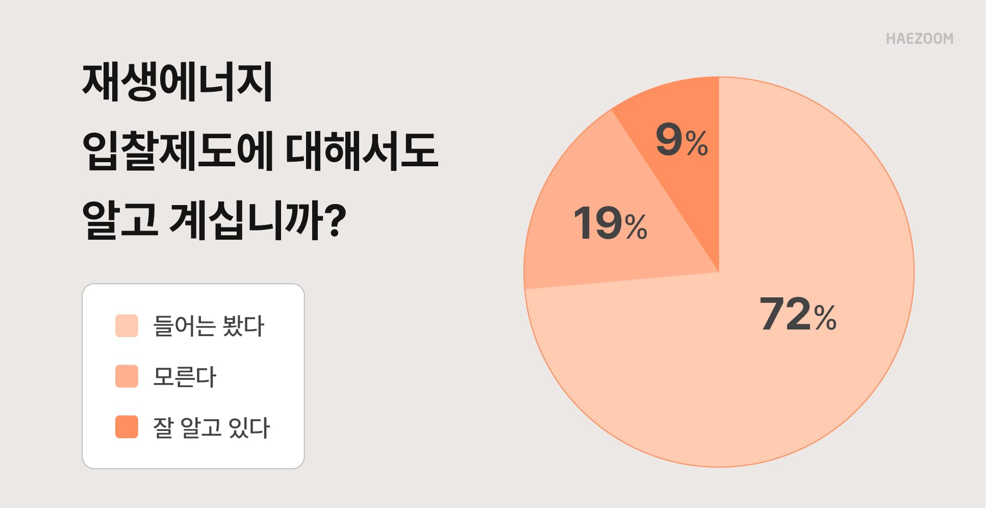 안녕하세요. 에너지 IT 기업 해줌입니다! 최근 저희 해줌에서 태양광 발전사업자 약 600분을 대상으로 설문조사를 진행했는데요. 설문 결과, 응답자의 90% 이상이 재생에너지 입찰제도에 대해 잘 모른다 고 답변하신 것을 확인했습니다.